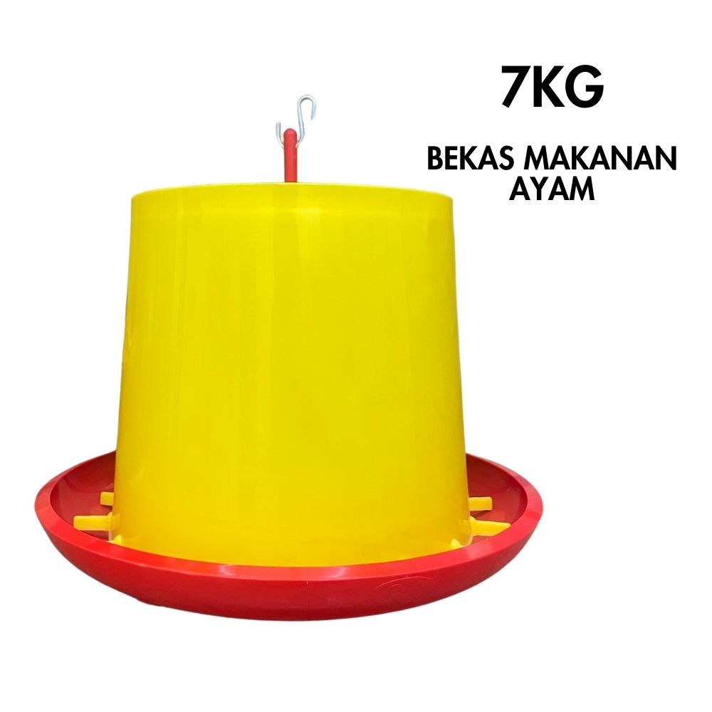 Bekas makanan ayam 7KG ialah pilihan terbaik untuk reban sederhana dan penternakan separa komersial. Kapasiti lebih besar membolehkan ayam makan lebih lama tanpa perlu kerap ditambah. Stabil, mudah digenggam dan tahan cuaca panas atau hujan.