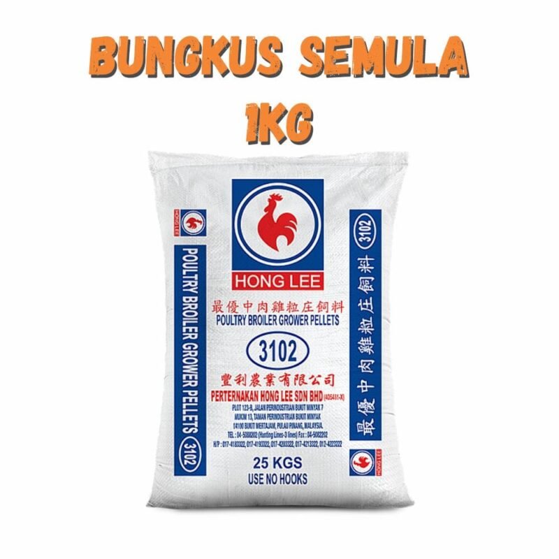 Dedak Makanan Ayam 3102 Pembesaran / Broiler Chicken Feed | HL Feedmills | Repack 1Kg