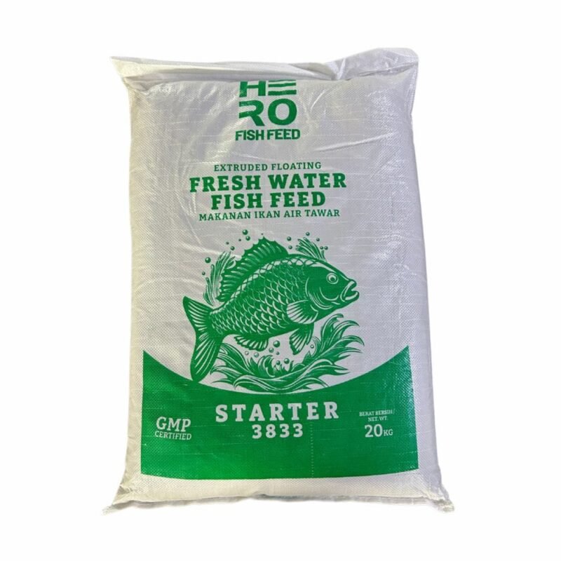 Dedak Makanan Ikan Air Tawar HERO 3833 Permulaan ialah makanan khusus yang dirumus untuk anak ikan air tawar pada peringkat awal tumbesaran. Ia mengandungi protein tinggi, asid amino penting, serta vitamin dan mineral lengkap bagi menyokong perkembangan awal yang sihat, memperkuat sistem imun, dan meningkatkan kadar kelangsungan hidup benih ikan.