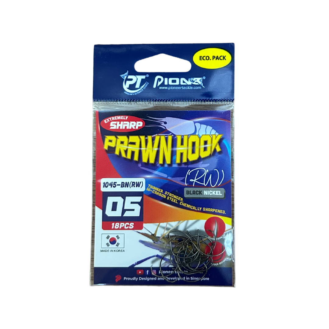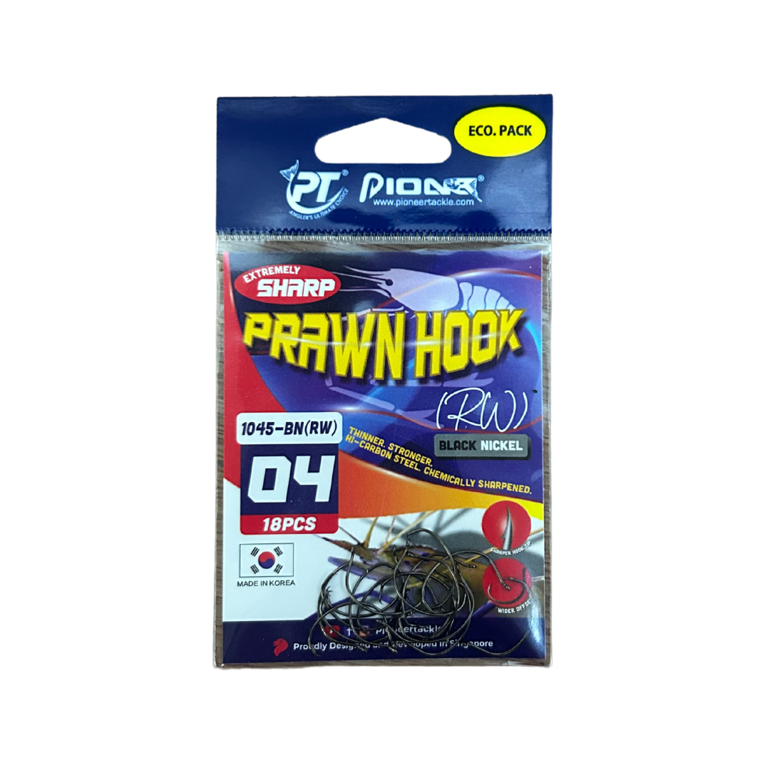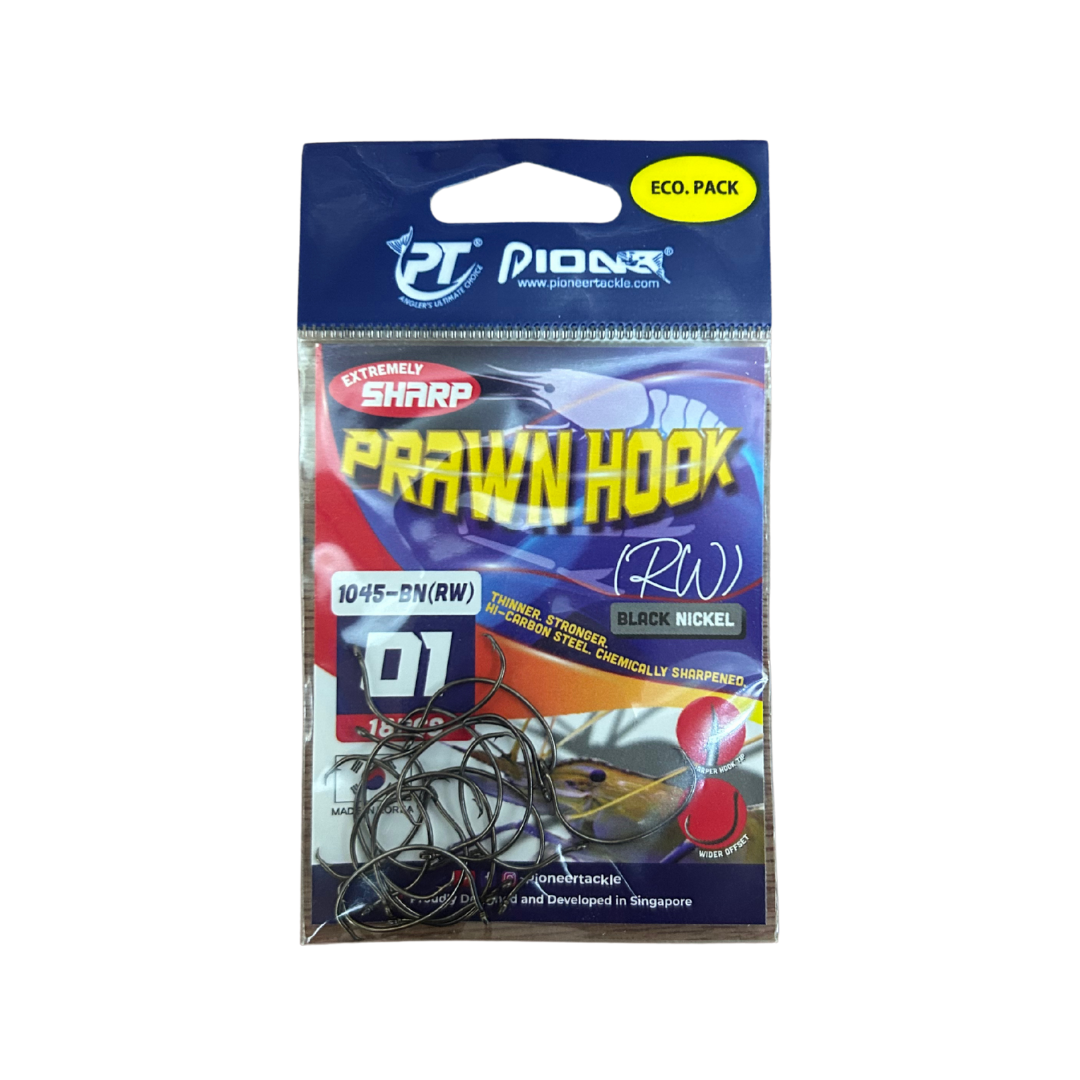 PIONEER Prawn Mata Maut Hook 1045-BN (RW) ialah mata kail pancing khusus untuk teknik pancingan udang (prawn hook) dan ikan kecil hingga sederhana. Direka untuk memberikan ketajaman tinggi, pegangan kuat dan penetrate efektif, ia sesuai dijadikan pilihan utama pemancing yang menggunakan umpan hidup seperti udang, anak ikan atau soft bait kecil. Produk ini terkenal kerana bentuknya yang diperhalusi untuk meningkatkan kadar hook-up dan menjadikan strike lebih konsisten dalam pelbagai keadaan memancing.